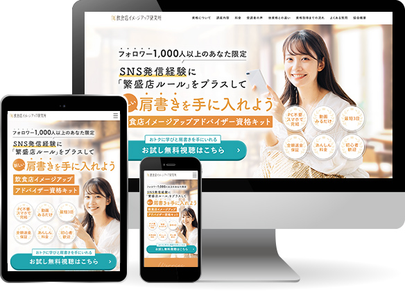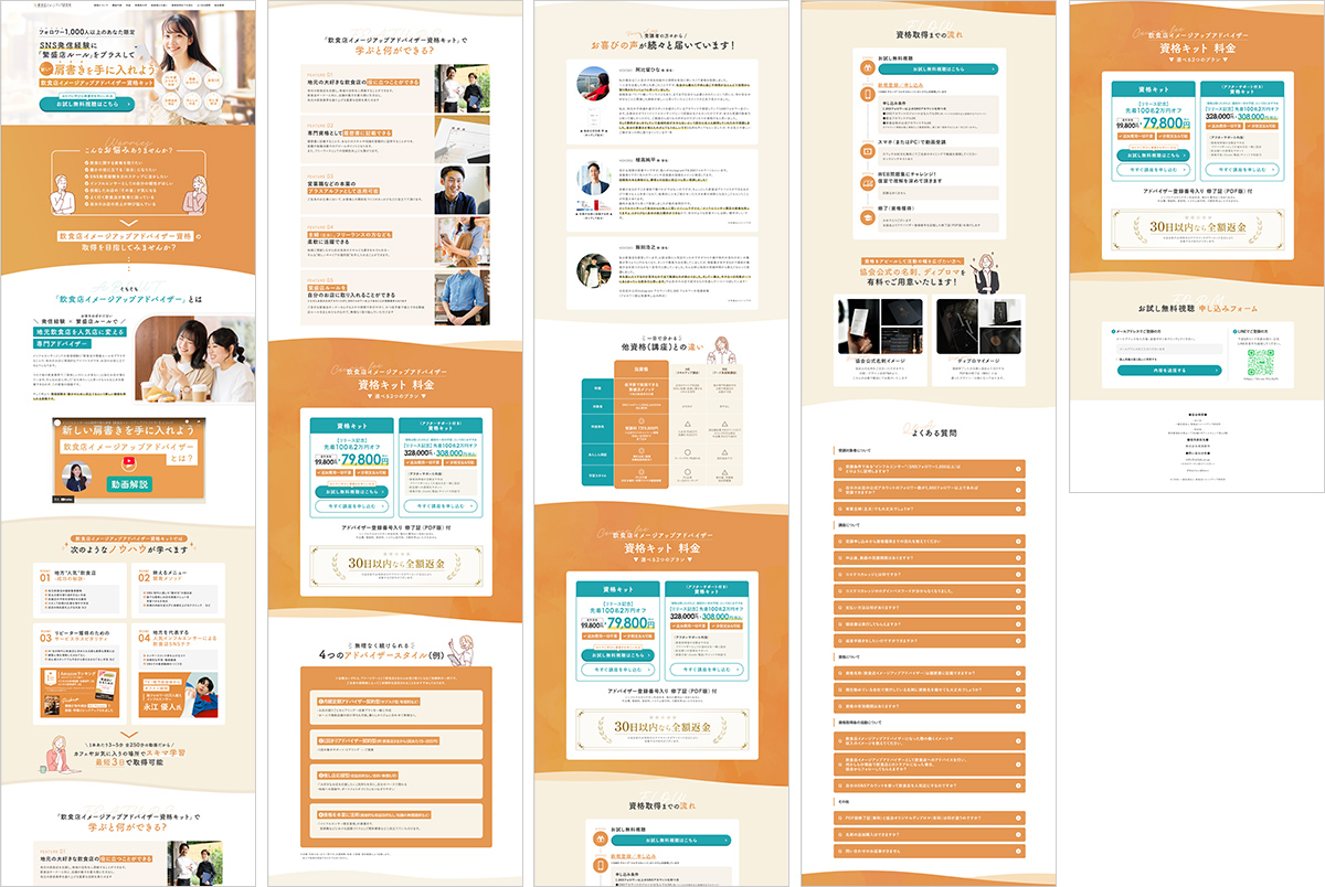 株式会社美食都市様 一般社団法人 飲食店イメージアップ研究所 ランディングページを制作いたしました。オレンジを中心とした優しい色合いの配色で情報を整理し、段階的に理解できる構成とすることで、サービスの価値が自然に伝わる導線を構築しています。 視覚的な統一感と可読性を重視し、信頼性を損なわないデザインとしております。