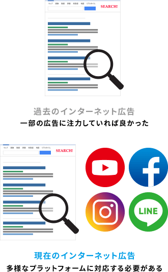 私たちは、リスティング広告をベースとしInstagram、Facebook等、お客様の商品・サービスにマッチした媒体での広告運用代行が可能です。