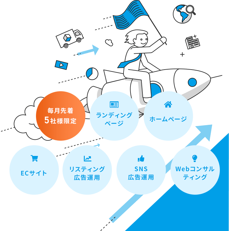 Web集客に関わるありとあらゆる施策を全速力でサポートいたします。
